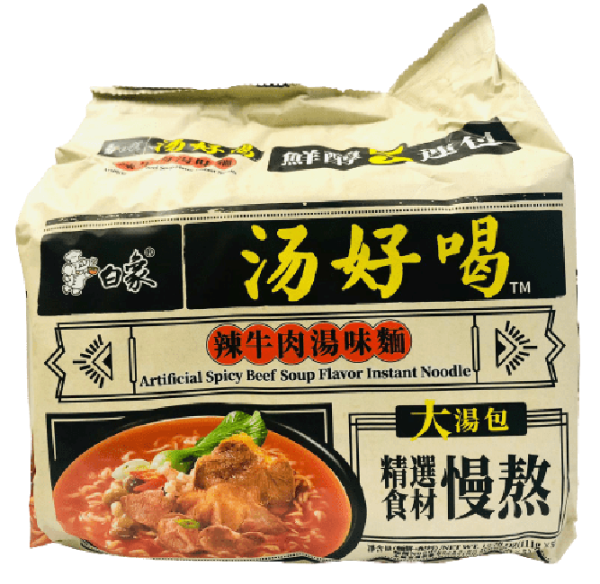 Baixiang Instant Noodles W. Spicy Beef Soup Flav. 5x111g