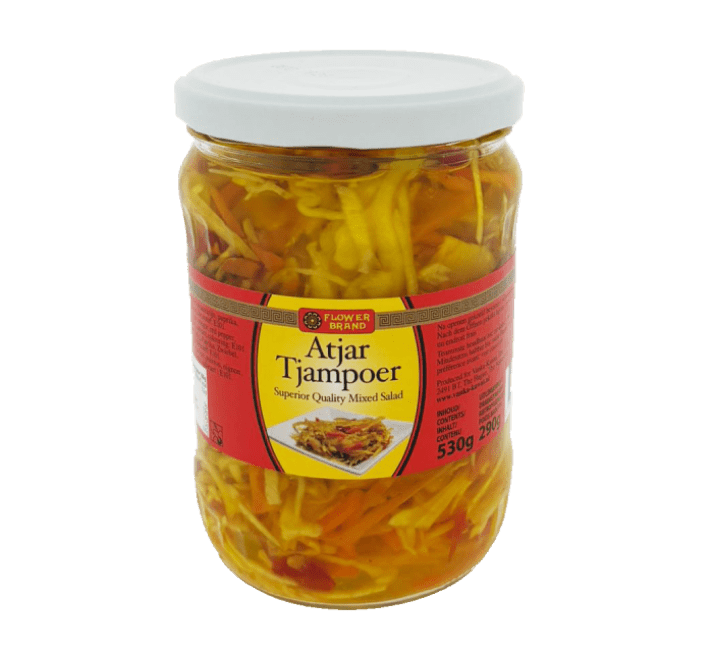 White cabbage, water, carrots, sugar, vinegar, red pepper, onon, leek, salt, flavourings (mustard), turmeric extract, colouring: ElOI. |