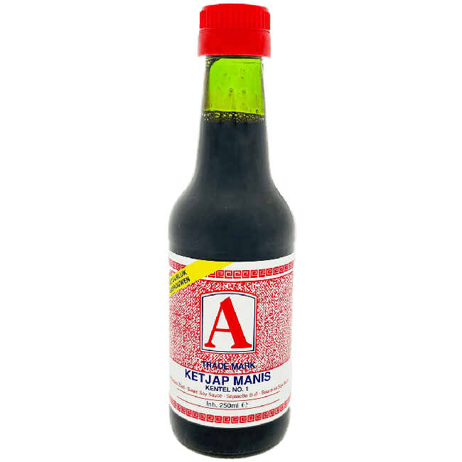 A Trade Mark Ketjap Kental No.1 is een Indonesische ketjap die bekend staat om zijn rijke, hartige smaak en is onmisbaar in vele Aziatische gerechten. Deze stroperige saus is veelzijdig te gebruiken zoals bij roerbakgerechten, marinades en dipsauzen.