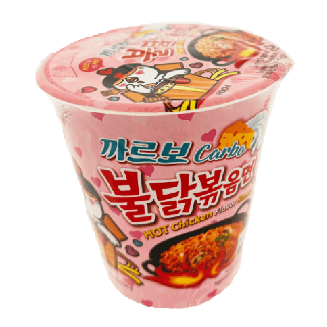 Samyang Hot Chicken Ramen Carbonara smaak is een kant en klare noedel die bekend staat om zijn pittige en romige smaak. Het is een fusie van de traditionele Koreaanse pittige kip ramen en de Italiaanse carbonarasaus. De noedels zijn gemaakt met een combinatie van tarwemeel en aardappelzetmeel en de pittige carbonarasaus is gemaakt met kaas, room en kruiden.