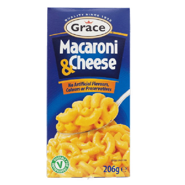 Grace Macaroni & Cheese is een populaire macaroni en kaasschotel in Jamaicaanse stijl die is gemaakt met een mix van romige kaas en elleboogmacaroni. Dit gerecht is een favoriet onder Jamaicanen en wordt ook genoten door mensen van over de hele wereld.