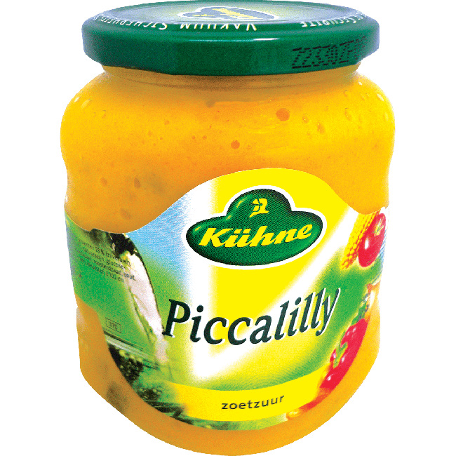 Water, Groenten 23% (Zilveruien, Augurken, Bloemkool), Natuurazijn, Suiker, Tarwebloem, Mosterdzaad, Zout, Raapzaadolie, Curcuma, Specerijen. |