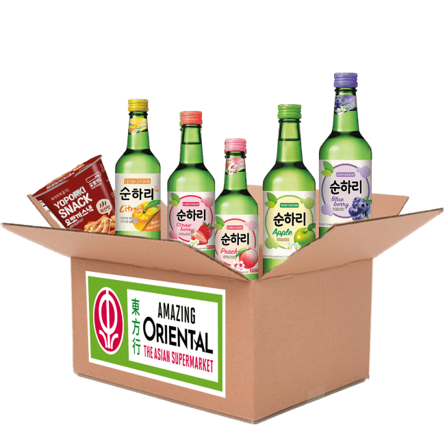 Bereid je voor op een smaakexplosie met ons luxe Soja Pakket! Deze levendige collectie bevat soju in vijf overheerlijke smaken: blauwe bessen, citroen, perzik, groene druiven en grapefruit. En om het nog beter te maken, voegen we eeen gratis pak Yopokki Snack Heet & Pittige Smaak 50g toe aan het pakket! Deze pittige, chruncy snack is de ultieme aanvulling op je soju - pefect als tussendoortje terwijl je drinkt.