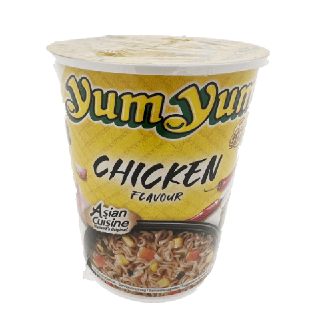 Yum Yum Instant Cup noedels kippenvlees smaak is een kant en klare noedel die snel en makkelijk te bereiden is. Het is een kant-en-klaar gerecht dat wordt geleverd in een handige bekerverpakking, waardoor het perfect is voor drukke mensen die willen genieten van een heerlijke maaltijd zonder al te veel tijd in de keuken door te brengen