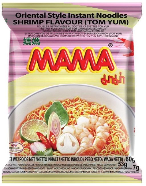 Mama Instant Noodles Creamy Tom Yum Shrimp Flavor is a popular brand and flavor of instant noodles. Creamy Tom Yum Shrimp Flavor is a specific flavor variety offered by Mama, known for its unique and distinctive taste. The noodles are made from wheat flour and come with a spice pack that contains a flavorful broth base.