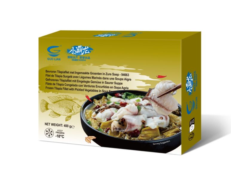 Tilapia Fillets Packet (62.5%): TILAPIA (Oreochromis Niloticus), Water, SOYBEAN Oil, Acidity Regulator (E330, E331, E500, E500ii, E296), Emulsifier (E451i, E450, E452i, E471), Salt, Sugar, Flavour Enhancer (E621, E635), Trehalose, MALTODEXTRIN, Ginger Juice. Pickled Vegetable Packet (25%): MUSTARD, Salt, Flavour Enhancer (E621, E635), Acidity Regulator (E270, E330), Colour (E102). Seasoning Mix Packet (12.5%): Pickled Vegetables (Radish, Ginger, Chilli), Rapeseed Oil, Flavour Enhancer (E621, E635), Pumpkin, Sugar, Vinegar, Salt, Pickled Chili, Acidity Regulator (E330). E102: may have an adverse effect on activity and attention of children. Storage conditions: Keep frozen at -18°C. Do not refreeze after defrosting. Although every effort is made to fillet the fish, some small bones may remain in the fish. This is a raw product. Not suitable for direct consumption. Consume after the fish thoroughly cooked. |