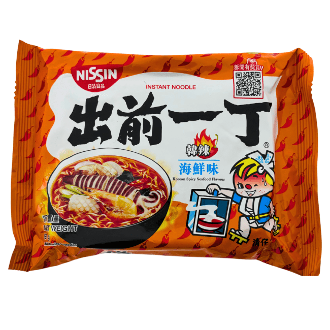 Nissin Demae Ramen Instant Noodles Spicy Seafood Kimchi Flavor are ready-to-eat ramen noodles produced by Nissin Foods, a Japanese company. These noodles are quick and easy to prepare, making them a popular choice for a quick meal.